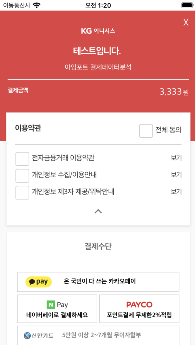 임의로 생성한 결제 버튼을 누르면 결제를 진행할 수 있다