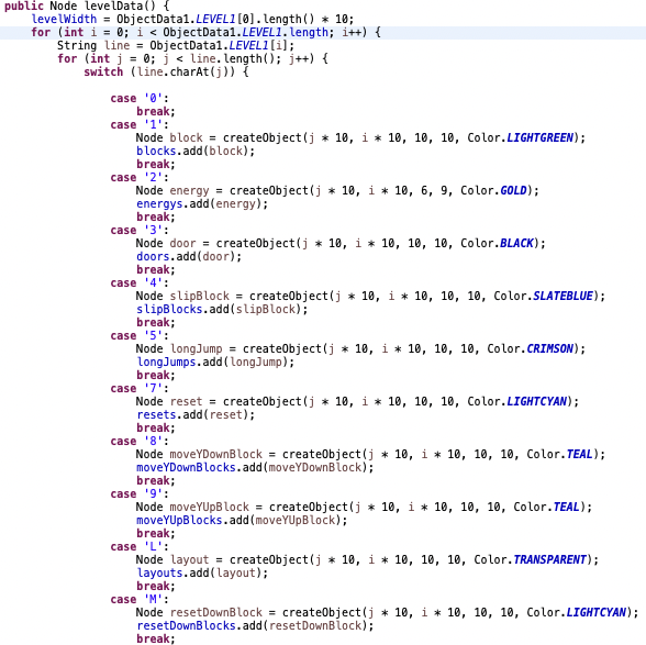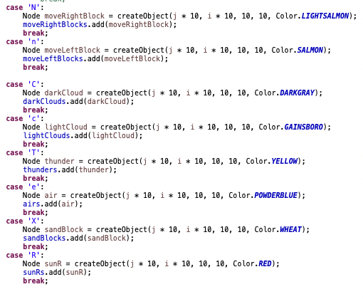 Node moveRightBlock = createObject(j * 10, i * 10, 10, 10, Color.LIGHTSALMON);