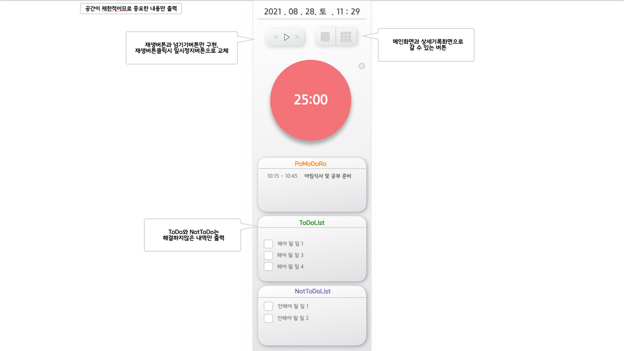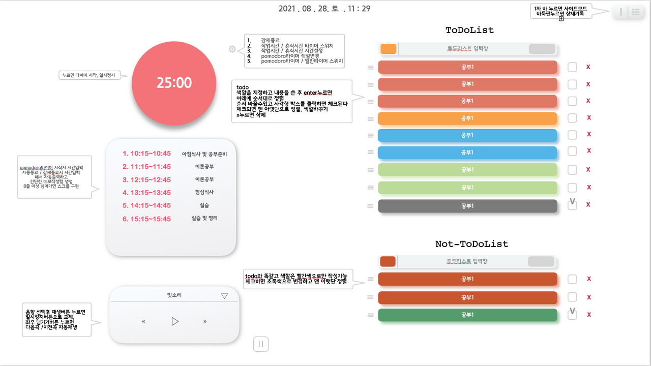 - 공부를 좀 더 효율적으로 하기 위해 매시간 체크하는 pomodoro타이머,