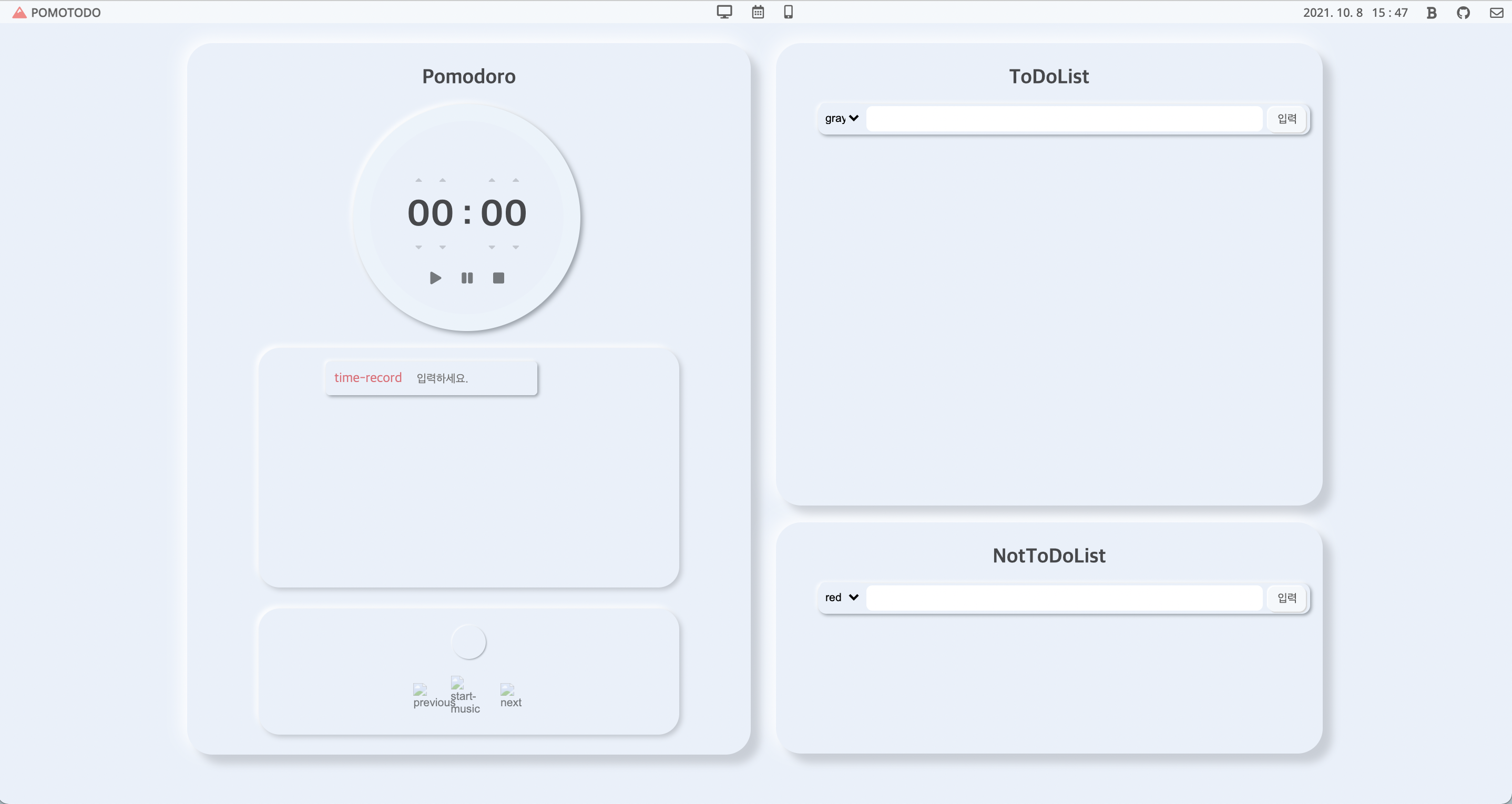 | POMOTODO(7) - 개발진행중,2주간의 결과물 (0) | 2021.10.25 |